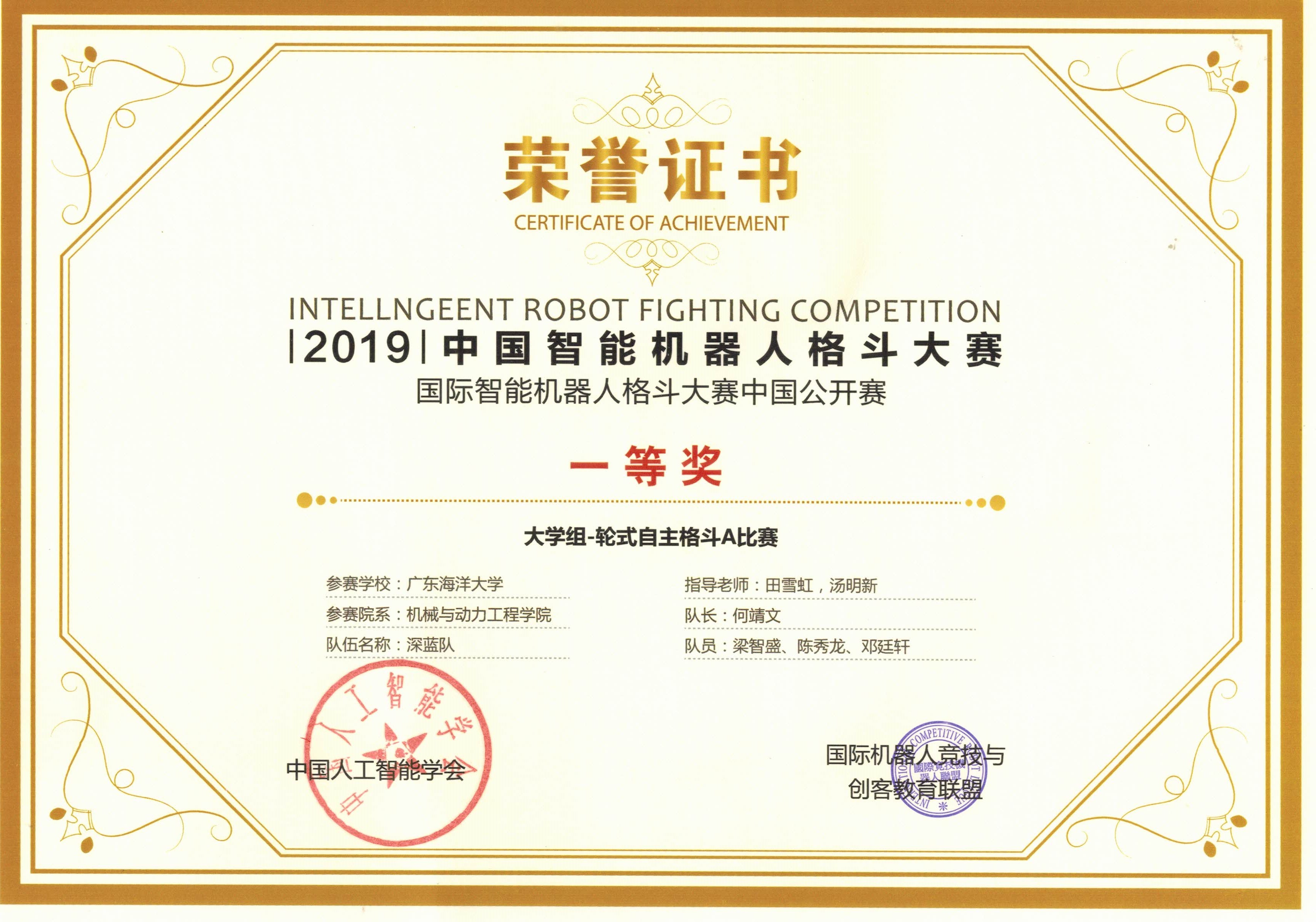 公司WilliamHill中文官方网站的机器人创新团队(深蓝实验室)参加了大学组的轮式自主格斗,在汤明新老师、田雪虹老师的组织与指导下,由何靖文、梁智盛、陈秀龙和邓廷轩4位同学组成的队伍,代表公司参加比赛并获得了全国一等奖的好成绩。