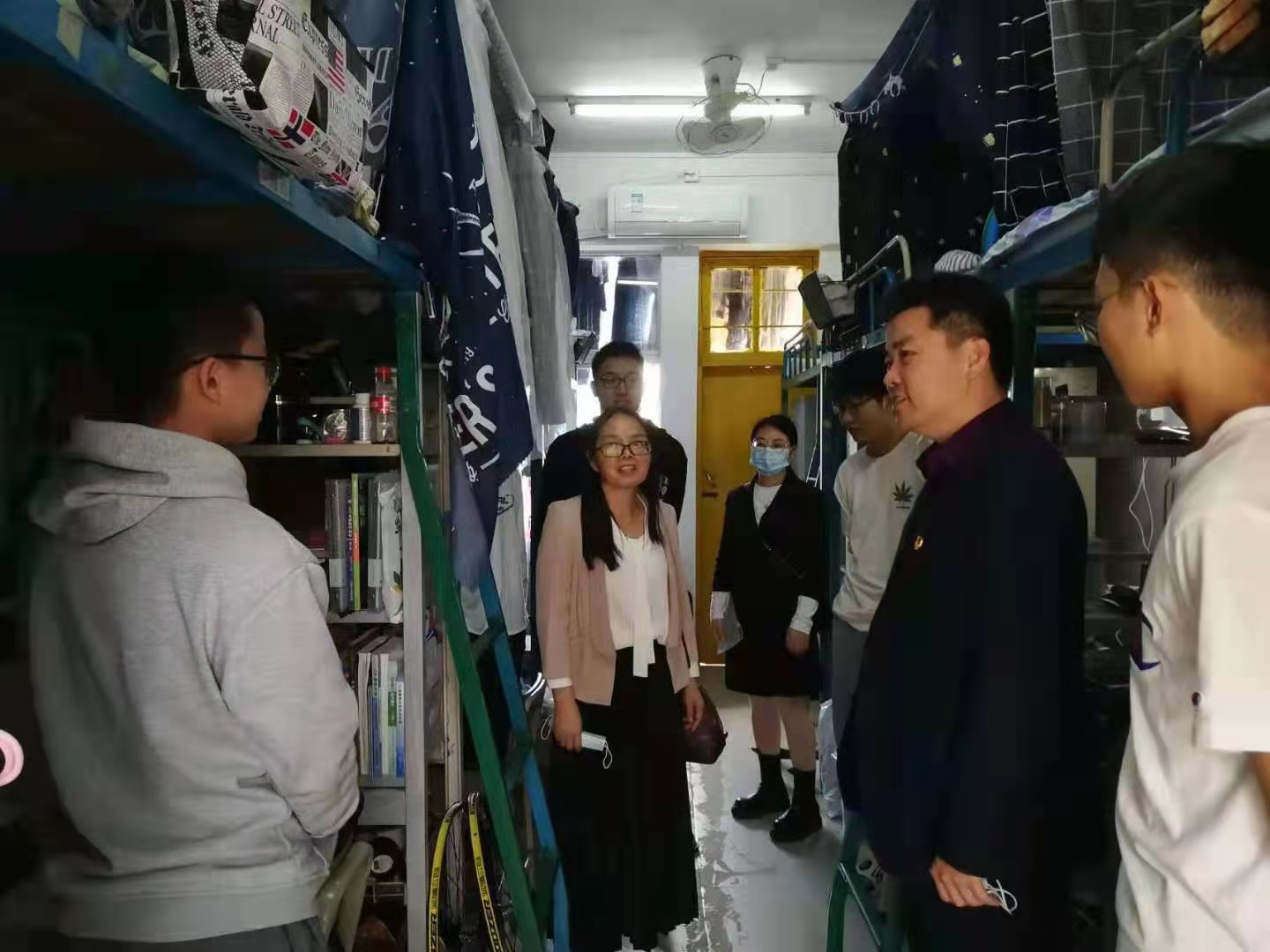 3月8日上午,公司领导李国芳、俞国燕、钟桂安、刘海涛和员工处副处长林忠新等以及全体辅导员,到员工宿舍走访,与员工亲切交谈,了解员工学习、生活、卫生、疫情防控情况,为员工送上新学期祝福和期望。