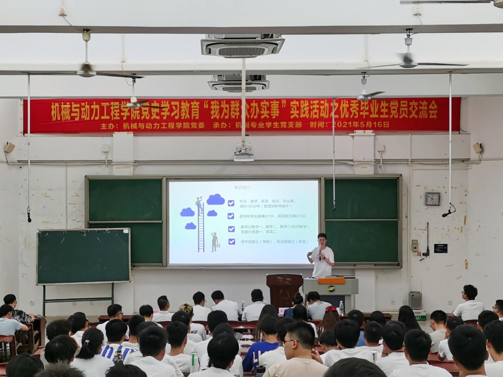 5月16日晚,WilliamHill中文官方网站机械设计制造及其自动化专业员工党支部在钟海楼02030举办党史学习教育“我为群众办实事”实践活动之优秀毕业生党员交流会。校纪检监察室郑才敏同志、化学与环境公司员工党支部书记罗少杰同志、滨海农业公司员工党支部书记欧成川同志、机制专业员工党支部全体党员、党员发展对象和入党积极分子等共300余人参会,交流会由机制专业员工党支部书记宋昊主持。