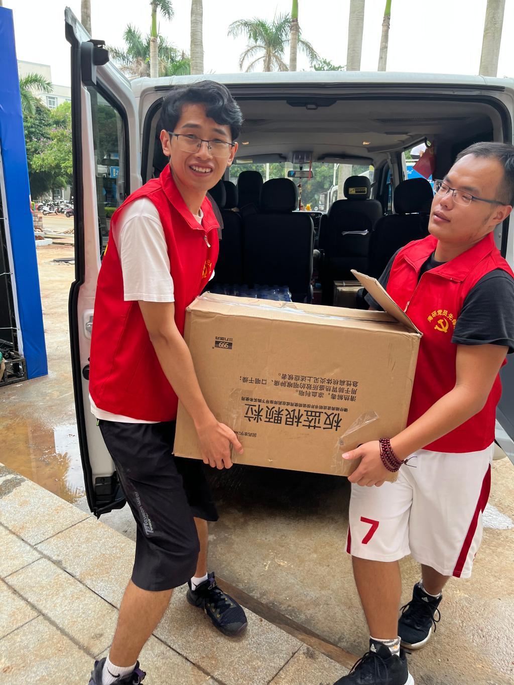 为助力研究生院的迎新工作,在9月15日下午,公司研究生党员马敬东、党员发展对象王成积极参加为新生准备防疫物资的志愿服务活动。本次活动中,马敬东和王成两位同学积极协作,把成箱的板蓝根颗粒、口罩、温度计等防疫物资从车上搬到公寓大厅,并以楼层为单位将防疫物资分组,最后把它们分发到自己所负责楼层的每一间宿舍。最后,顺利完成了此次志愿服务活动,整个过程中,公司两位同学热情洋溢,充满了干劲。