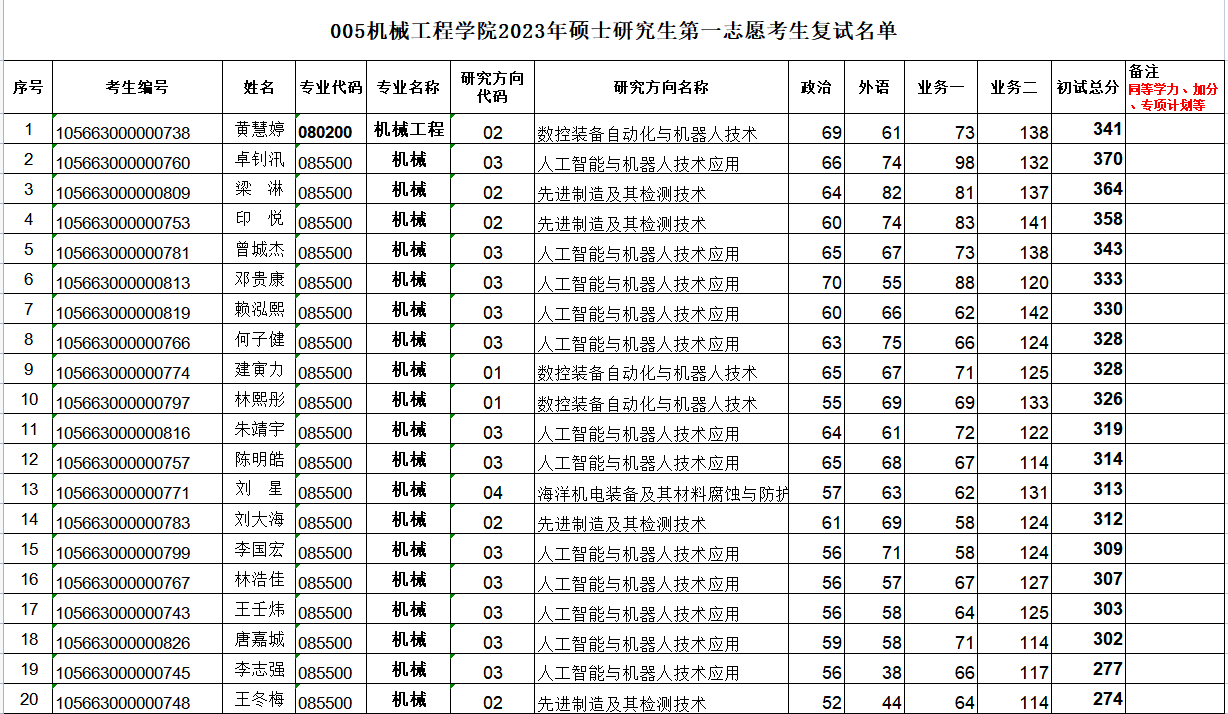 复试名单详见附件2,若名额最后一名出现成绩并列的,选取按照初试全国统考科目成绩较高的考生。