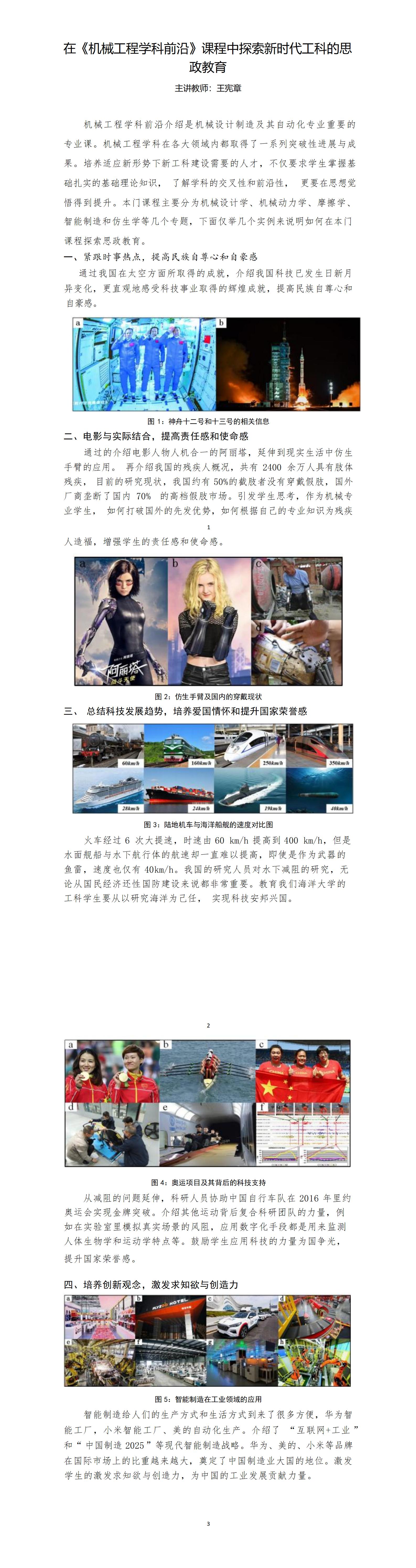 在《机械工程学科前沿》课程中探索新时代工科的思政教育:王宪章